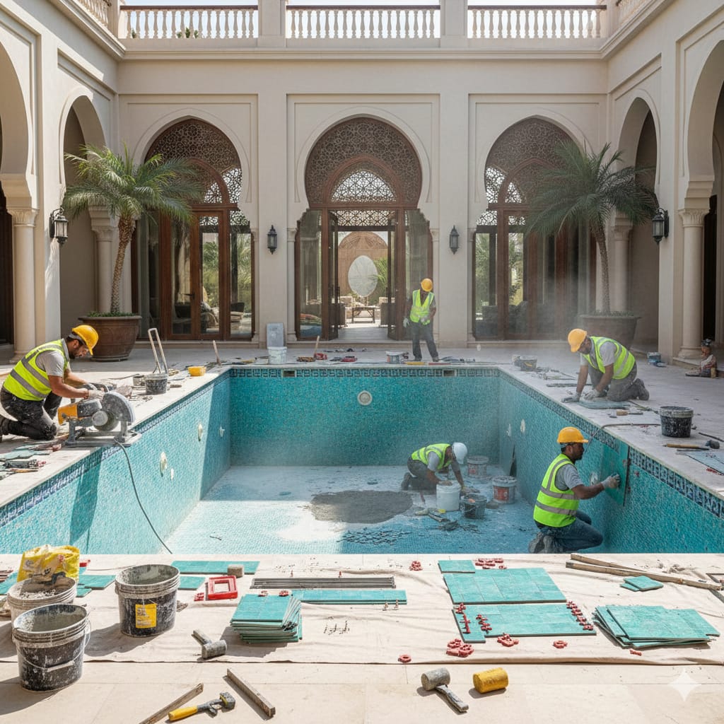We specialize in swimming pool renovation, repair, and maintenance services in Dubai. From pool tile installation, waterproofing, and filtration system repair to routine cleaning and annual maintenance contracts, we deliver reliable pool solutions for residential and commercial properties. Our team follows Dubai standards to ensure quality, safety, and customer satisfaction.
